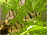 Die Gruppe von fünf Sumatra-Barben zählte zu meinen ersten Fischen. Nach anfänglichen Krankheiten, die auch ein Opfer gefordert haben, sind die vier verbliebenen Fische prächtig gediehen. Leider ist diese Art sehr aggressiv und als "Flossenzupfer" recht bekannt.